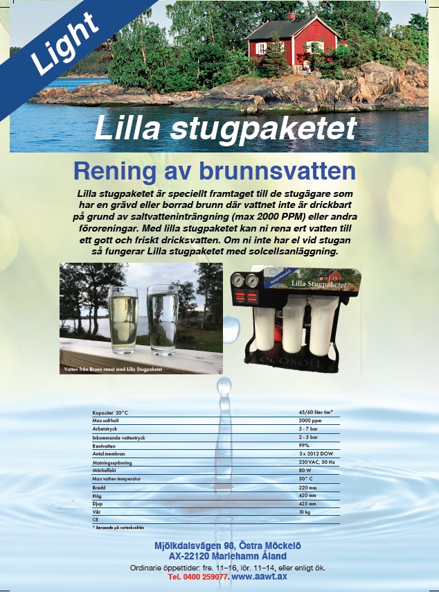 Aland Advanced Water Technology (AAWT) är en leverantör av högkvalitativa produkter för vattenrening och realtidsövervakning av vattenkvalitet. Med lång erfarenhet av vattenrening och analyssystem så kan vi på AAWT hjälpa er att finna den bästa lösningen för att rena eller övervaka ert vatten. Tveka inte att kontakta oss om det är något ni har några frågor.